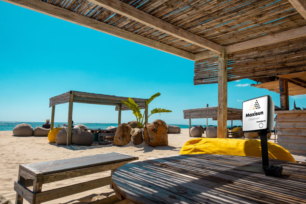 The Maxisun Mistifyer combines leading edge technology with chic looks and ease of use. The cabin provides guests with an even layer of factor 30 sunscreen within 10 seconds. In this way, the outdoor experience is stretched considerably, which has a positive effect on turnover. And the investment? The investment is nil. The low fee pays for itself quickly, because as a partner you receive a percentage of the guest payments.